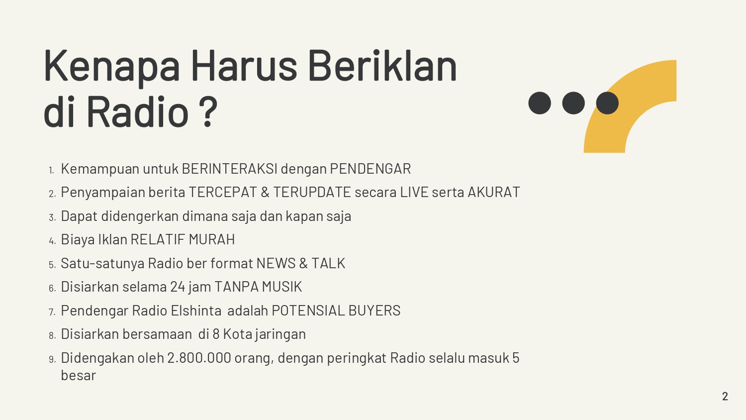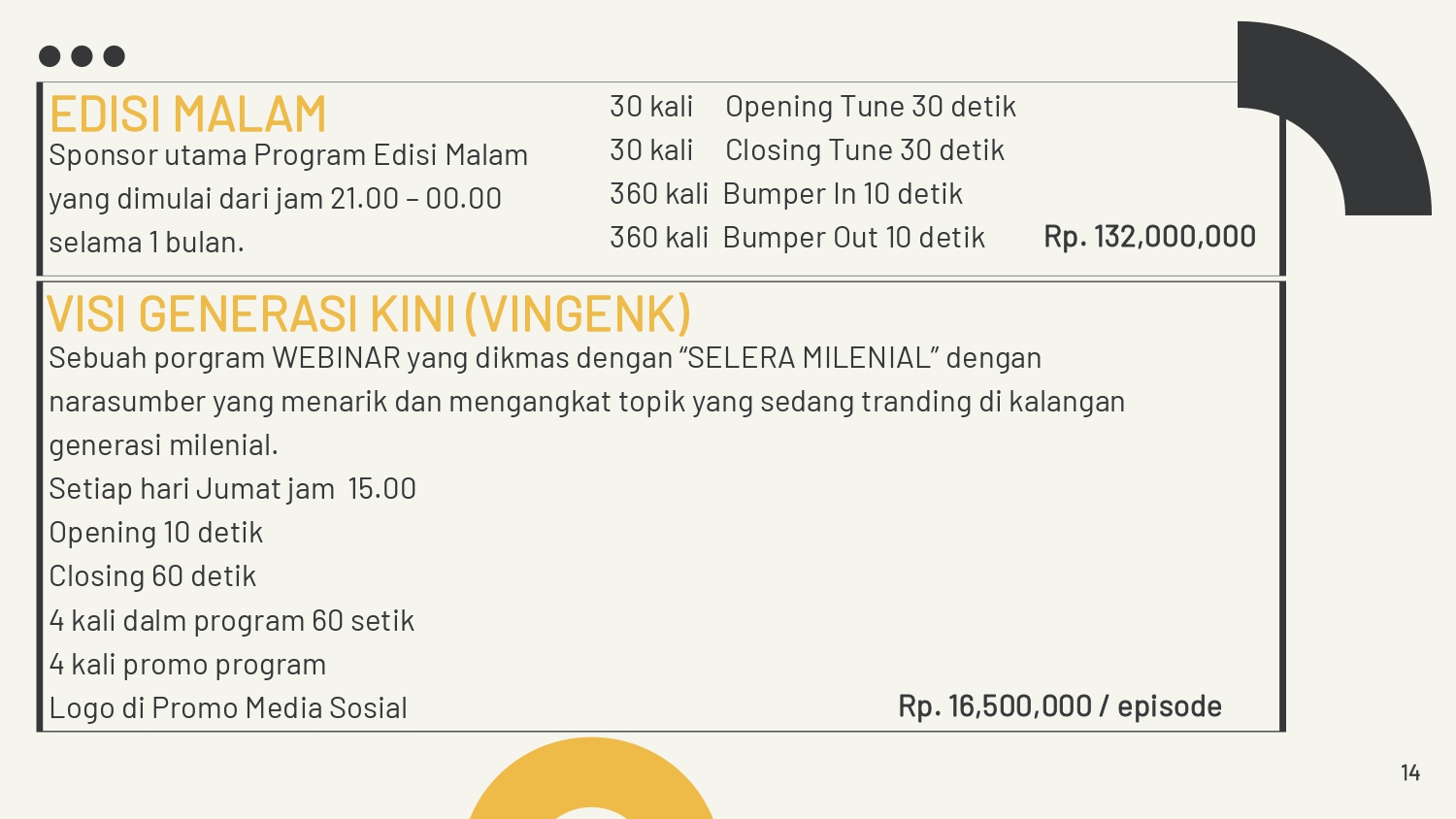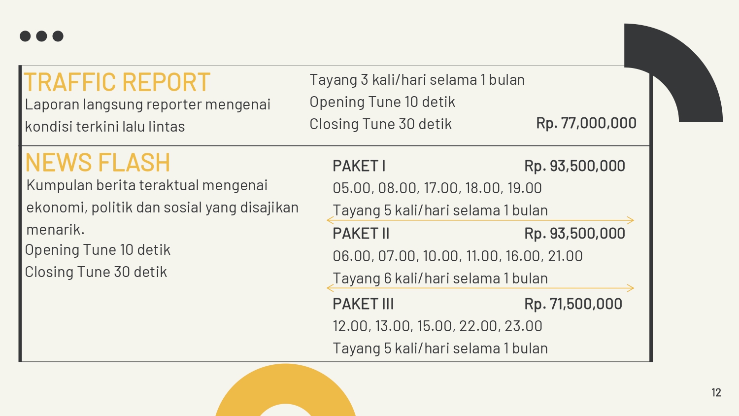 - Waktu penyerahan materi iklan adalah dua hari sebelum penayangan