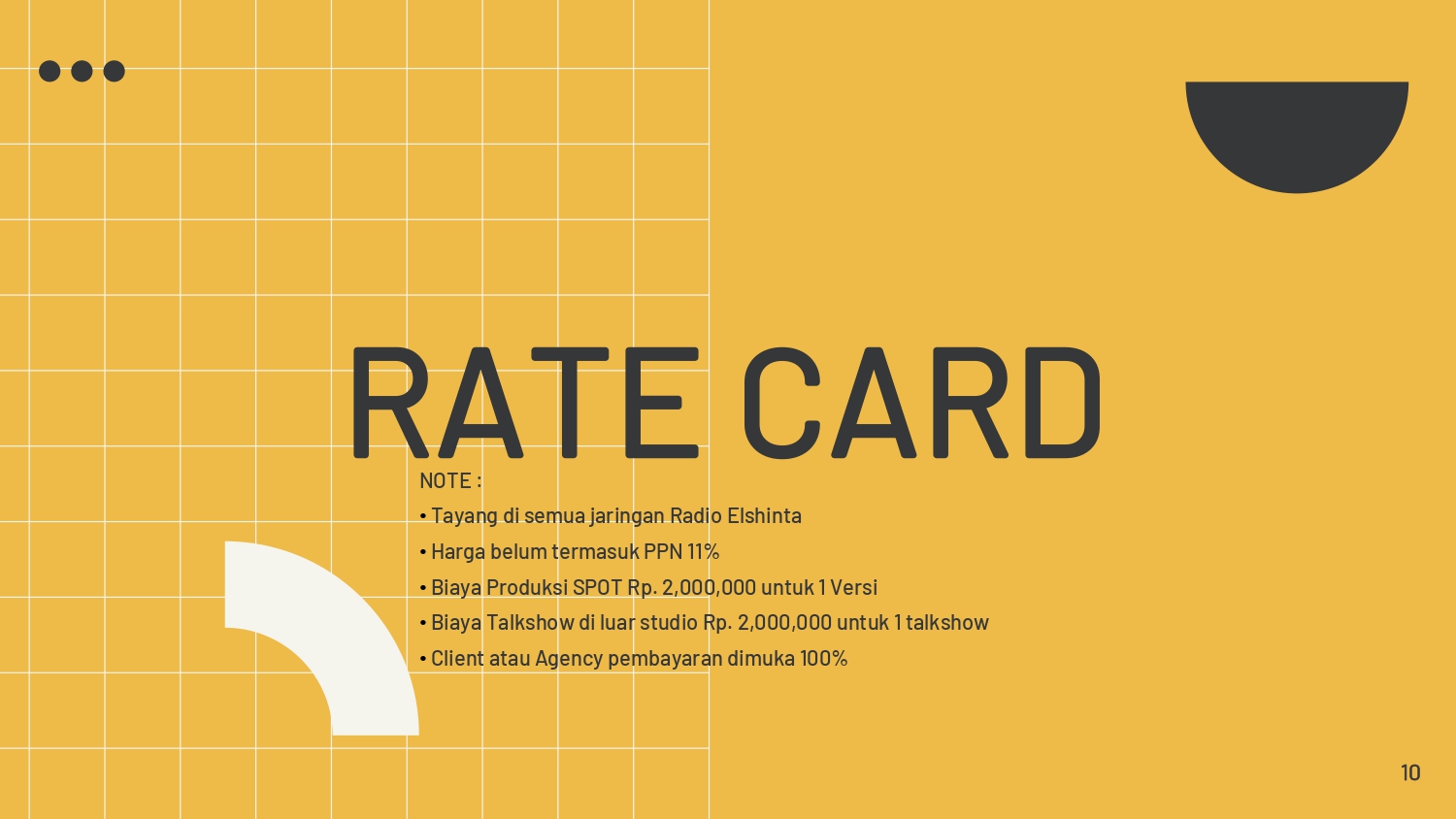 - Tarif belum termasuk PPN 10%