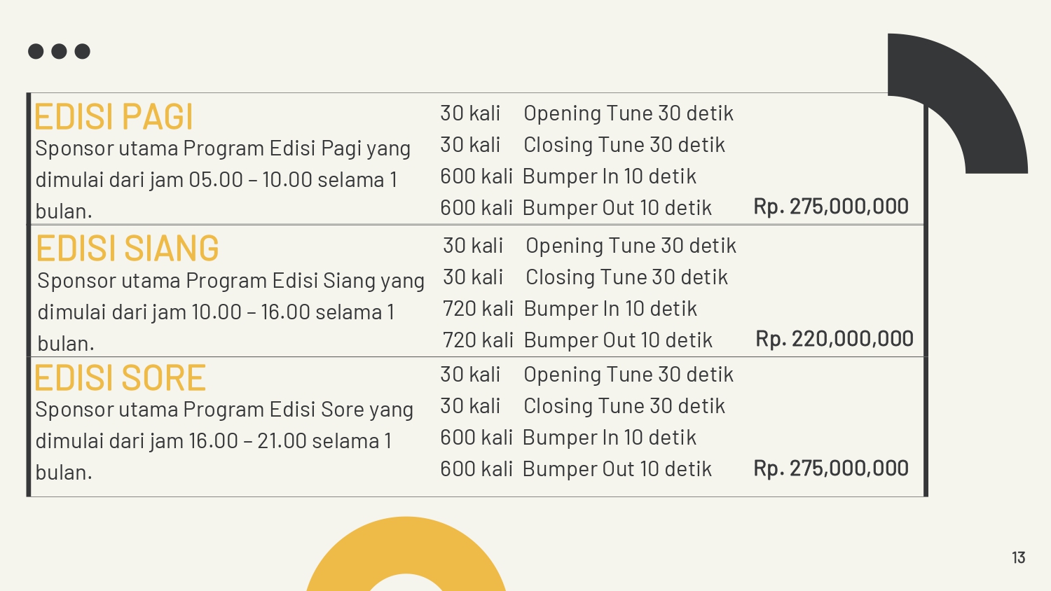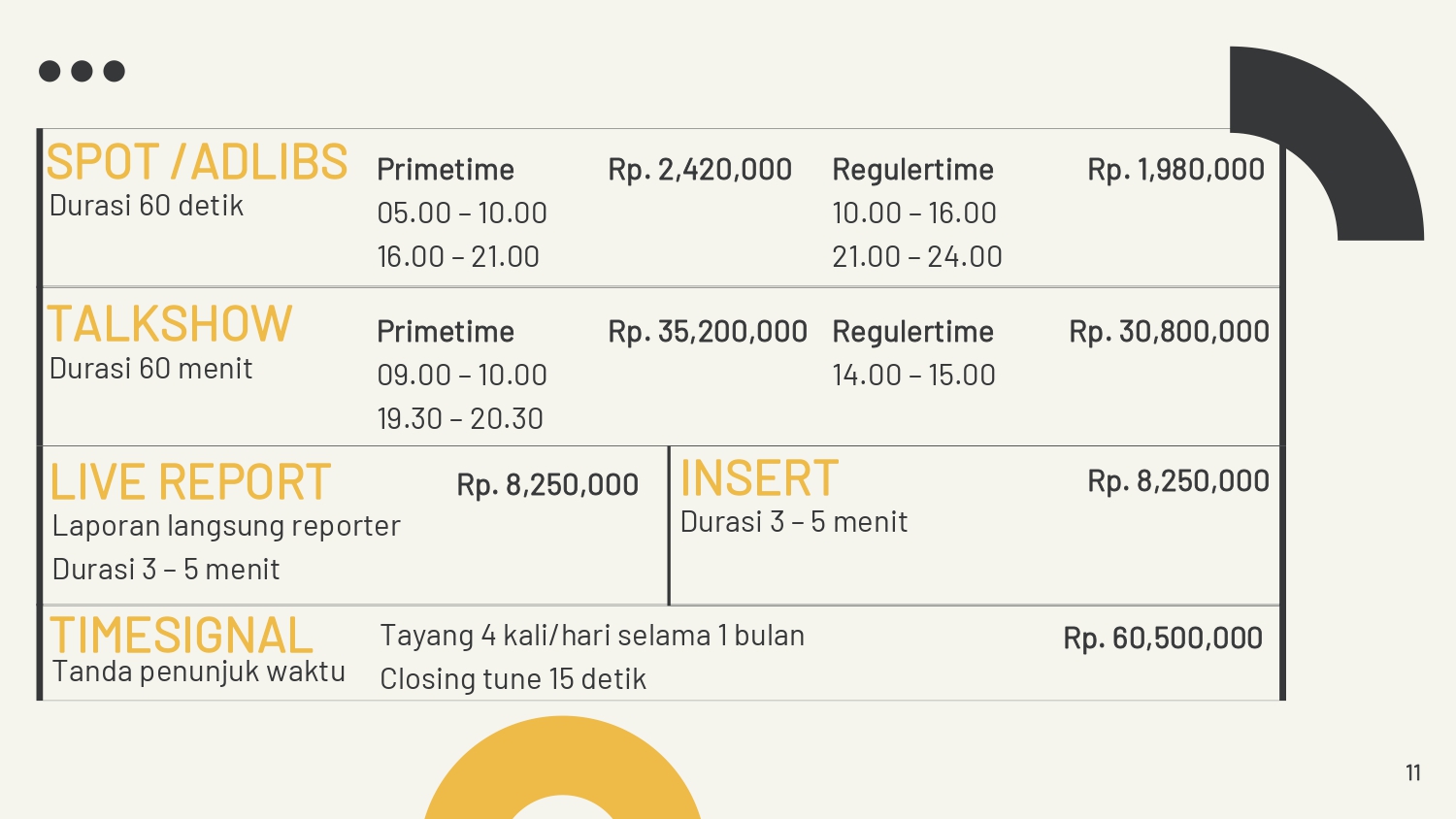 - Pemasangan Spot / Adlibs harus dengan format 2 Prime Time, 1 Regular Time